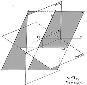 Plano oblíquo aos dois planos de projecção, cujos traços intersectam o eixo do X e são caracterizados por linhas com ângulos diferentes de 90º.